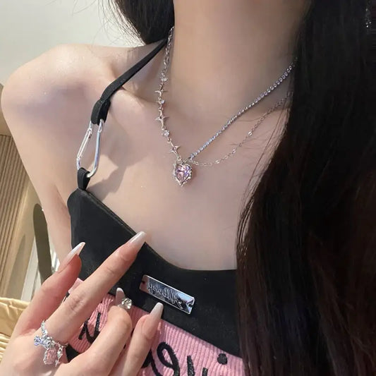 Pink Heart Crystal Necklace